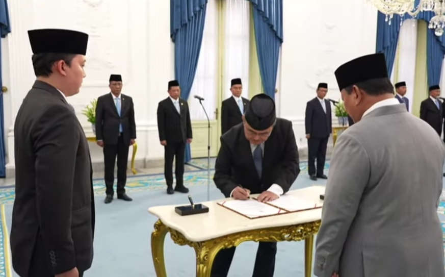 Dalam pelantikan itu, Presiden Prabowo nampak mengenakan setelan jas abu-abu dan dasi berwarna biru, lengkap dengan peci. Prabowo kemudian mendiktekan sumpah jabatan untuk anggota Komite Reformasi Polri.